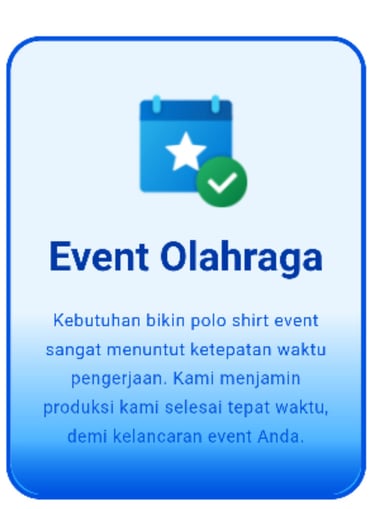 Bikin kaos polo Event Anda dalam waktu yang terbatas dapat kami penuhi dengan cepat dan tepat. Puluhan tenaga jahit ahli, kami persiapkan untuk kebutuhan mendesak Anda. Percayakan pembuatan seragam kaos polo bordir anda kepada kami. Custom Kaos Polo terpercaya hanya ada disini.